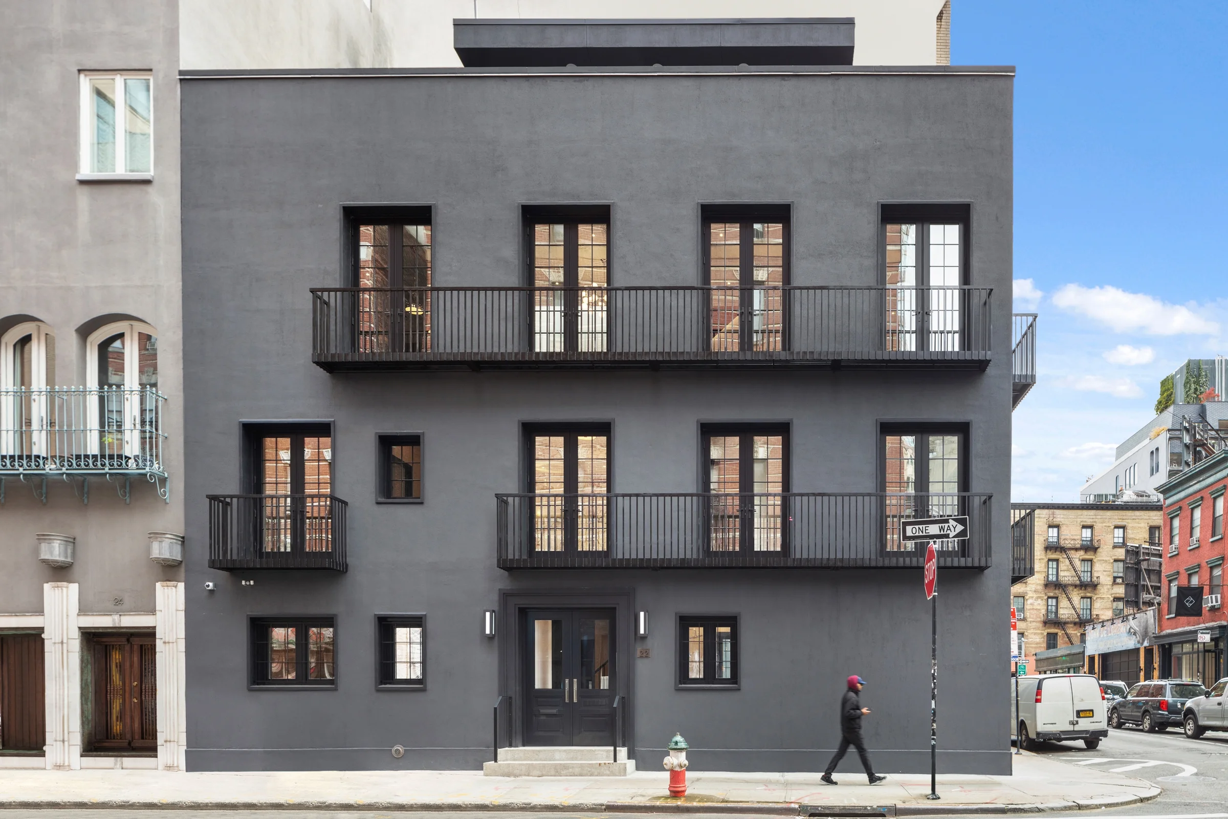 THOMPSON STREET TOWNHOUSE A hundred-year old building sits at the corner of Thompson St and Grand St in SoHo. Constructed when there were horse-drawn carriages and an elevated IRT train atop West Broadway, this structure has been subjected to various alterations over the years.