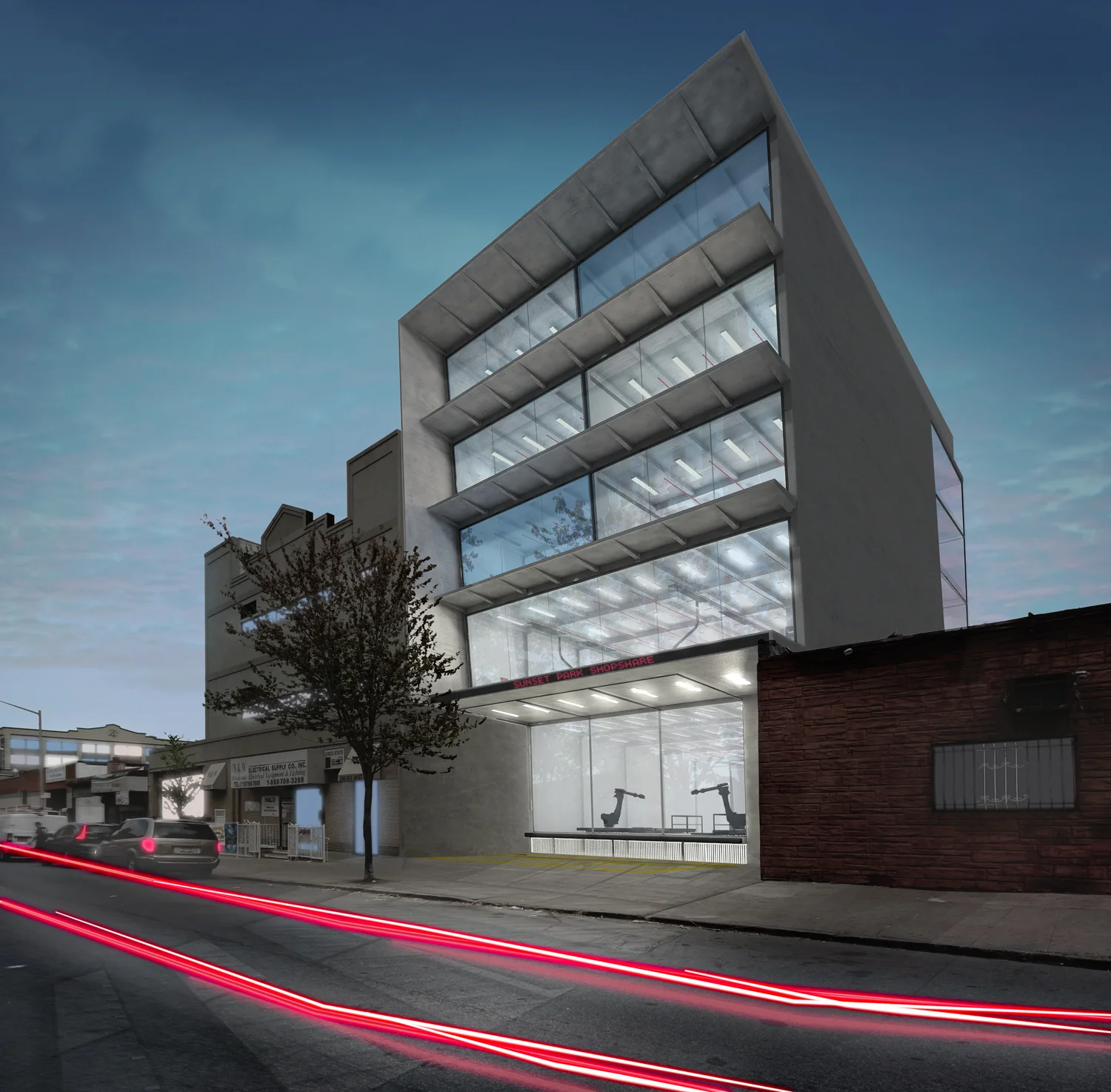 The first floor allows a high level of transparency showing off the building’s two FANUC robot arms. The large front door allow for natural light in the robotic shop , as well,as , pivoting up to give access to deliveries and pick-ups. SHOPshare is less than a block away from a 2-stop express subway ride to lower Manhattan and has easy access to the BQE. the project is in the planning phase now and is expected to open Fall 2016.